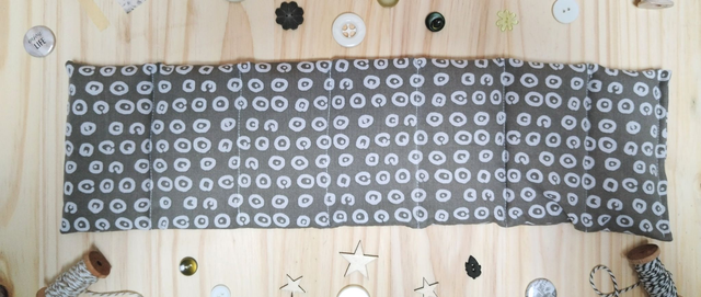 Cette bouillotte en graine de lin bio mesure 46 cm sur 11,5 cm