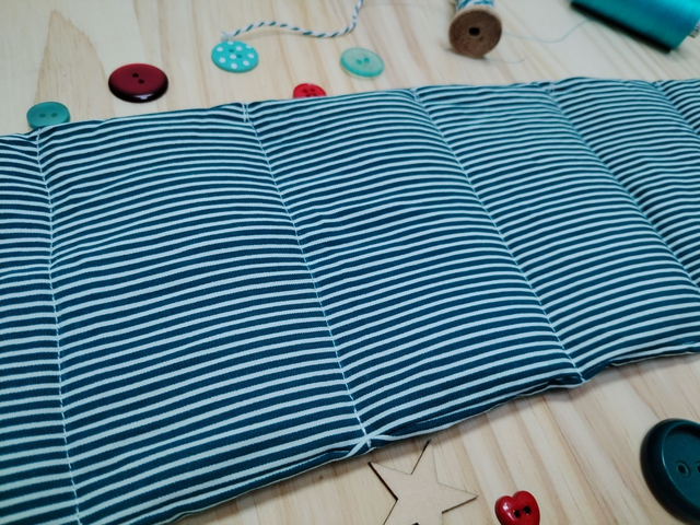Cette bouillotte en graine de lin bio mesure 46 cm sur 11,5 cm