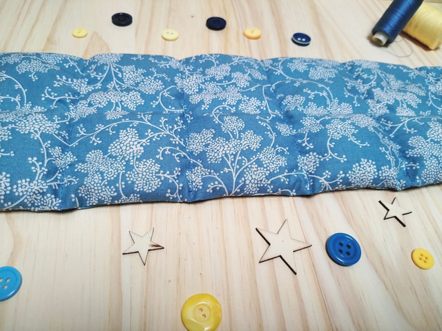 Cette bouillotte en graine de lin bio mesure 46 cm sur 11,5 cm
