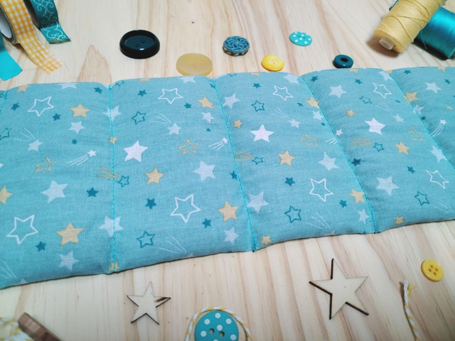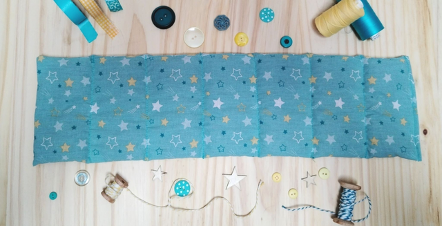 Cette bouillotte en graine de lin bio mesure 46 cm sur 11,5 cm